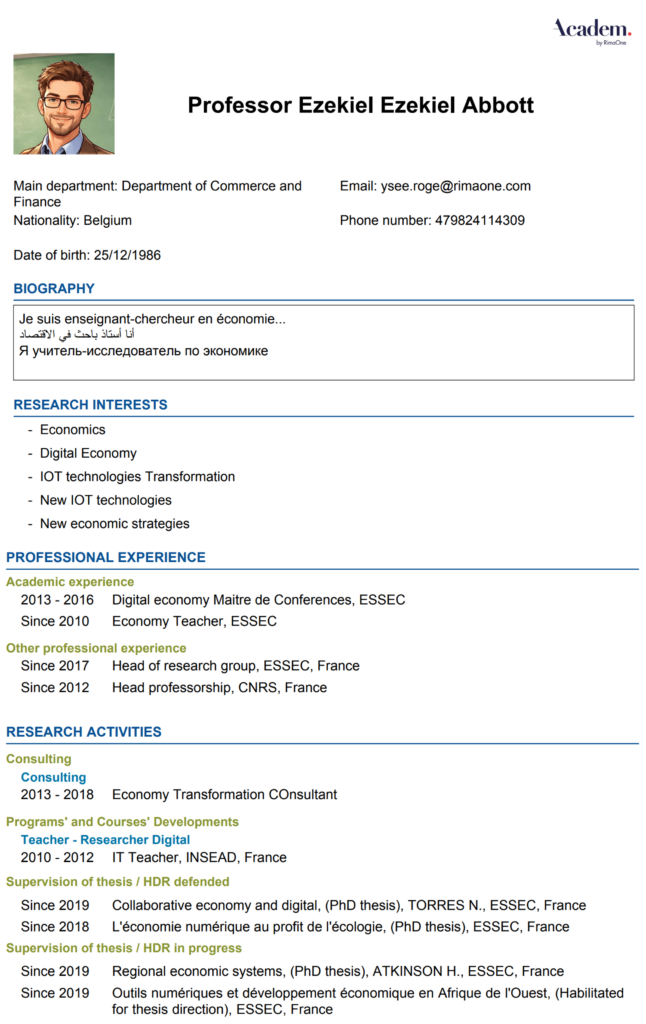 Your faculty’s CVs are automatically generated in Academ using all data related to their professional experience, publications, education, etc.