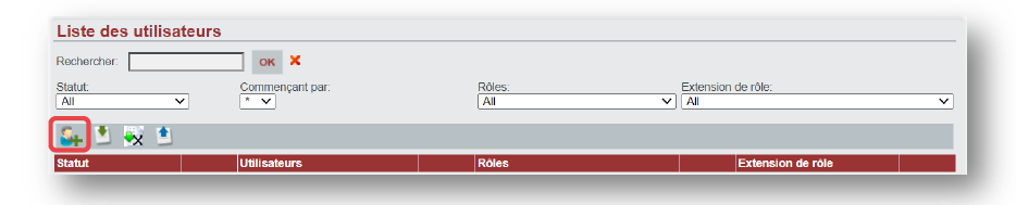 Cliquer sur l’icône + pour Créer un nouvel utilisateur