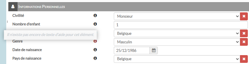 • Si le ℹ️ apparaît dans un rond rouge : aucun texte d’aide n’est encore renseigné pour ce champ.