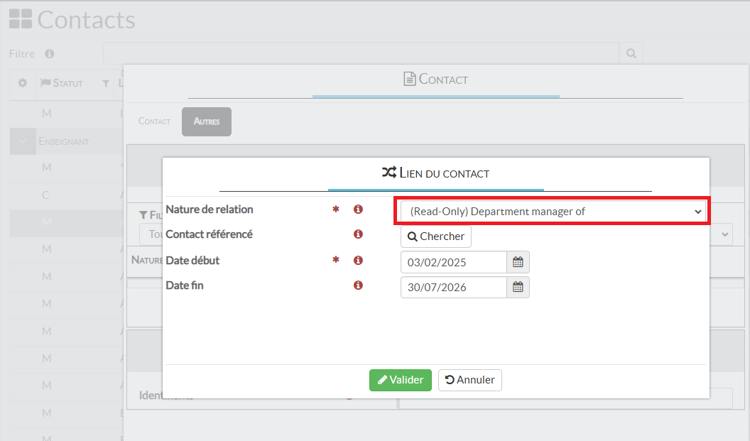 C’est un rôle dynamique paramétré depuis le profil du contact sur ACADEM > ajouter une relation > nature de la relation « (Read-Only) Department manager ».