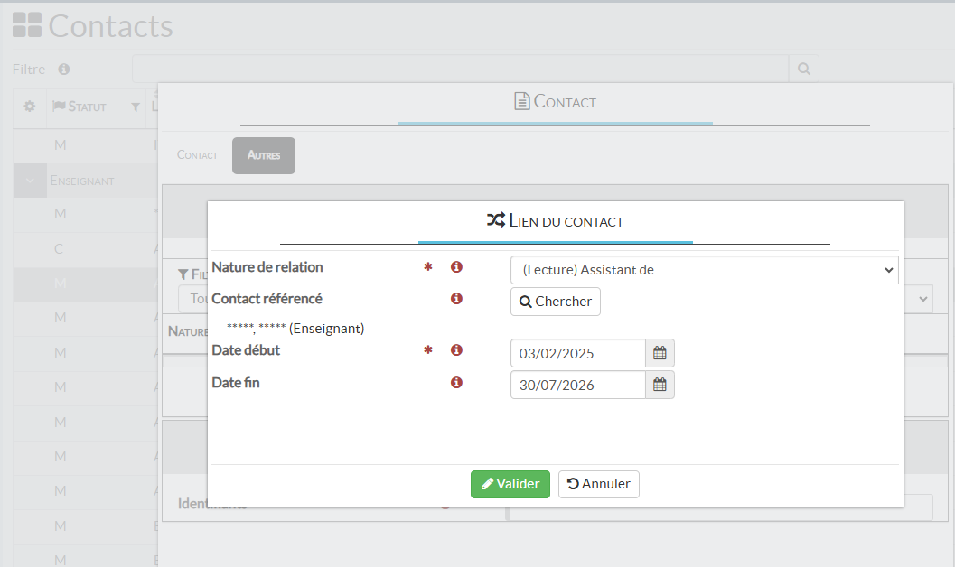 Peut modifier et valider les données ajoutées par tous les membres du corps enseignant, gérer les liens entre contacts, modifier les données référentielles et éditer les rapports.