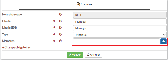 Deux groupes sont proposés par défaut pour faciliter le paramétrage, mais ils peuvent être modifiés ou remplacés selon vos besoins.