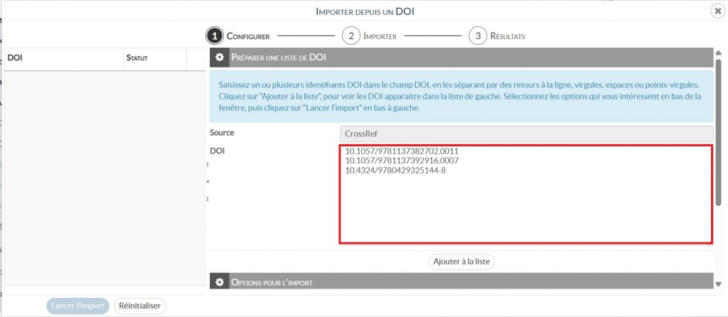 Pour l’utiliser, il vous suffit de connaître l’identifiant DOI de la contribution à ajouter.