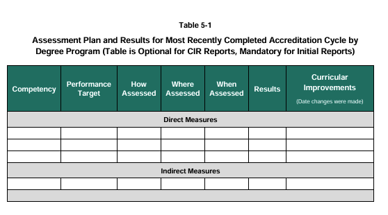 A 5.1 report, entitled Assessment Plan and Results for Most Recently Completed Accreditation Cycle by Degree Program, is therefore mandatory for AACSB accreditation.