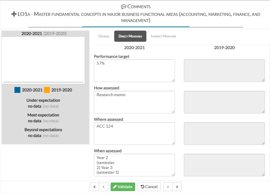ℹ️The comments included in the AACSB 5.1 Report concern only direct and indirect measures, for Learning Goals and Learning Objectives.
