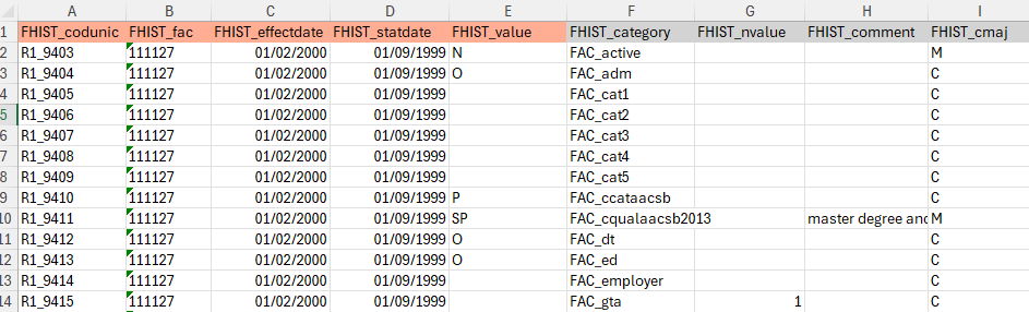 - FHIST_fac: this is the unique identifier of the faculty member in the FACULTY table. This field acts as a join between the two tables, to identify the faculty whose data is being modified.